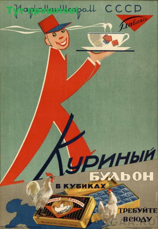 ✅ «Куриный бульон в кубиках»Рекламный плакатГришин И., 1937 год.